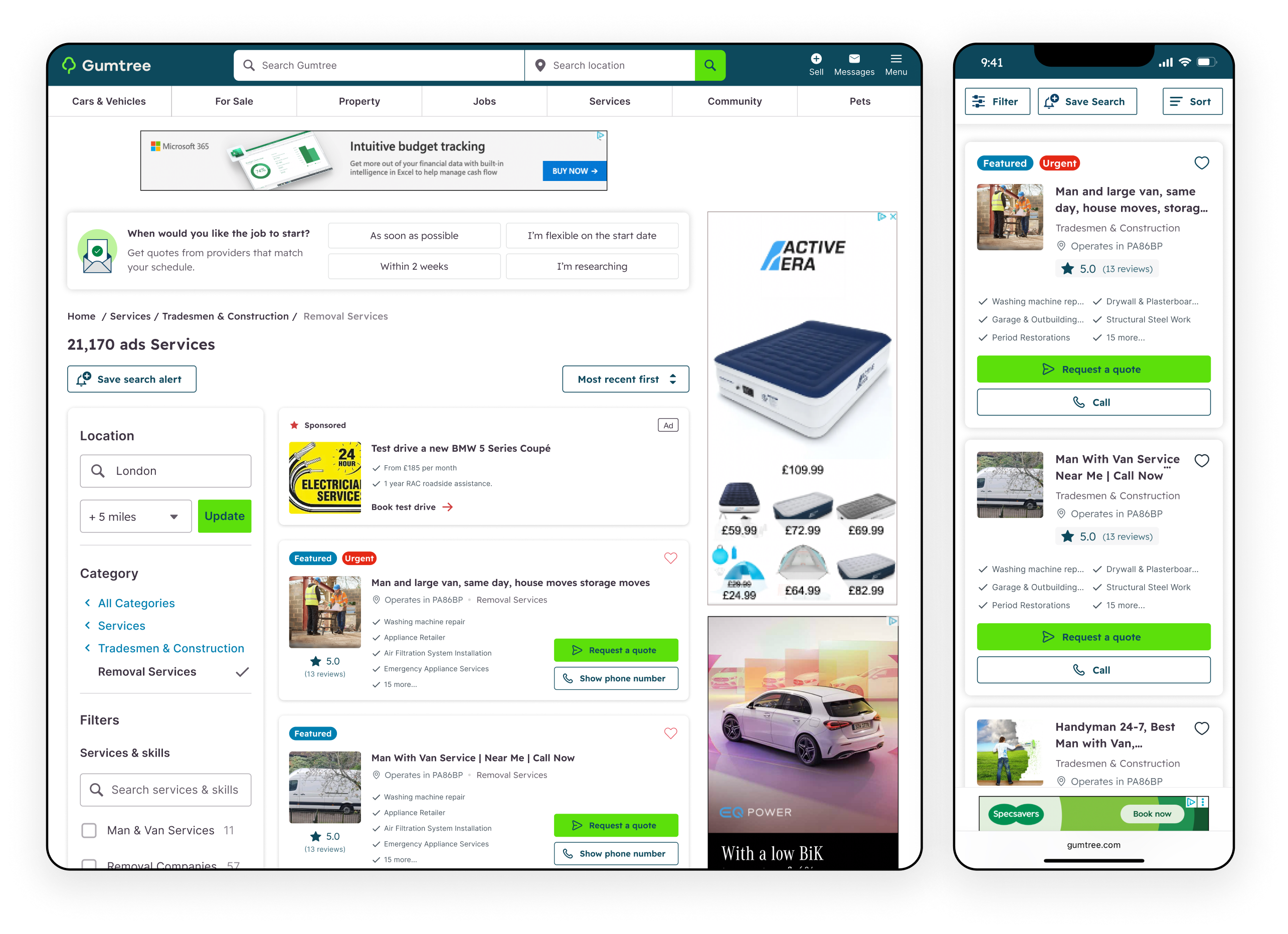 The collaboration expanded the Services vertical fivefold and introduced richer Bark profiles – including verified skills, ratings and reviews – directly into Gumtree. To support the integration, the home services UX was overhauled, making it easier for users to discover, filter and book trusted providers.
